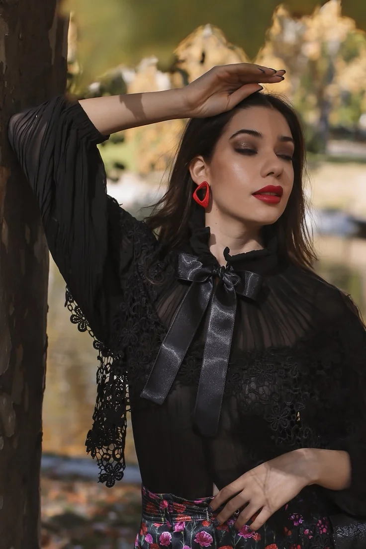 Újrahasznosított műanyag alapú hímzőfonallal bevont fülbevaló.